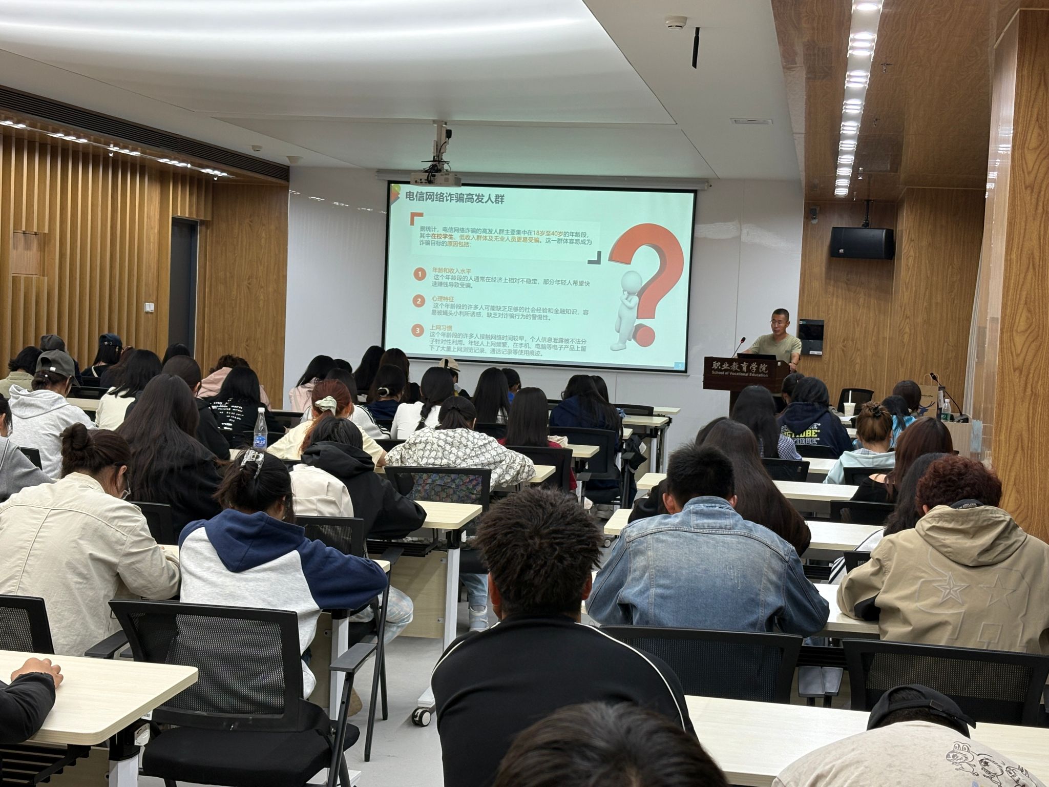 为增强学生防范电信网络诈骗意识,守护钱袋子安全。9月24日,安工部保卫干部苏森应职教学院邀请面向新生开展防范电信网络诈骗主题宣讲。