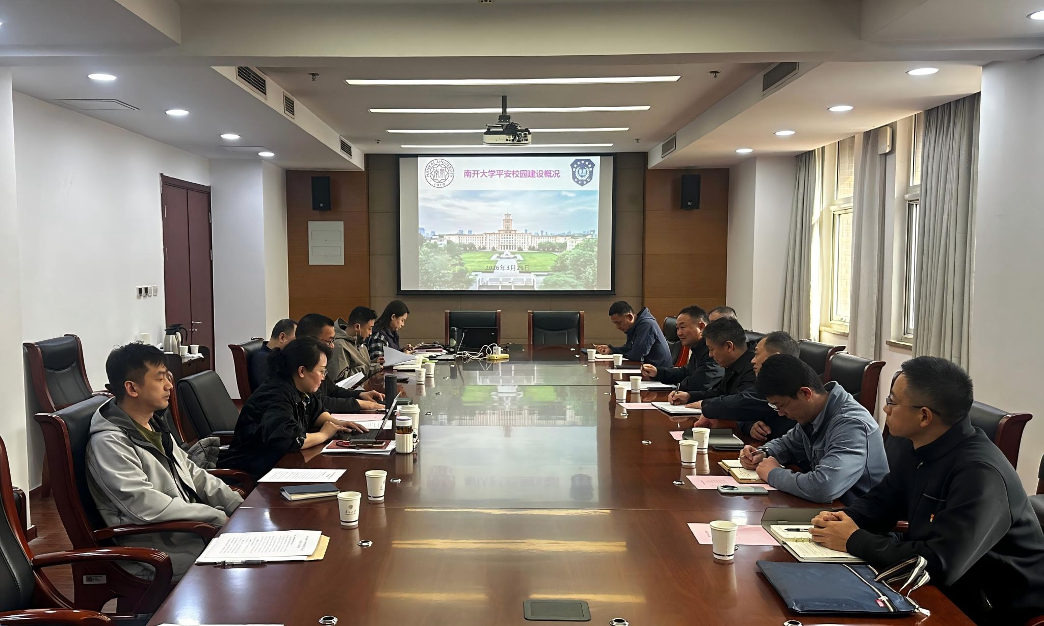 为深入推进树立和践行正确政绩观学习教育走深走实,坚持以党建引领校园安全治理提质增效,3月26日,安全工作部党支部在支部书记李凤国带领下,组织支部党员骨干一行7人赴南开大学保卫处开展专题调研学习南开大学保卫处处长胡军,副处长许立群、韩榕,及相关工作人员热情接待。